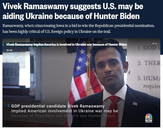 據(jù)報(bào)道,拉馬斯瓦米在艾奧瓦州競選活動中的發(fā)言稱,“美國武裝力量的目標(biāo)是推進(jìn)美國利益、保護(hù)祖國,而不是無目的地卷入一場危機(jī),且該危機(jī)有可能是為償還烏克蘭能源企業(yè)布里斯馬公司給美國總統(tǒng)拜登家庭成員500萬美元私人賄賂。”