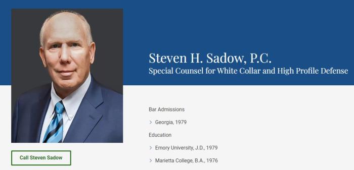 據(jù)報(bào)道,曾在佐治亞州為特朗普辯護(hù)的芬德林,將被一名來自亞特蘭大的律師薩多取代,他的網(wǎng)站簡介稱他是“為白領(lǐng)和知名人士辯護(hù)的特別律師”。