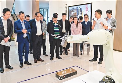 在自動檢測產(chǎn)品外觀缺陷的視覺質(zhì)檢機(jī)器人前,使節(jié)們停下腳步,饒有興致地觀看?;瘕堈f:“在數(shù)字經(jīng)濟(jì)推動下,人工智能等技術(shù)與傳統(tǒng)工業(yè)深度結(jié)合,讓人耳目一新。”