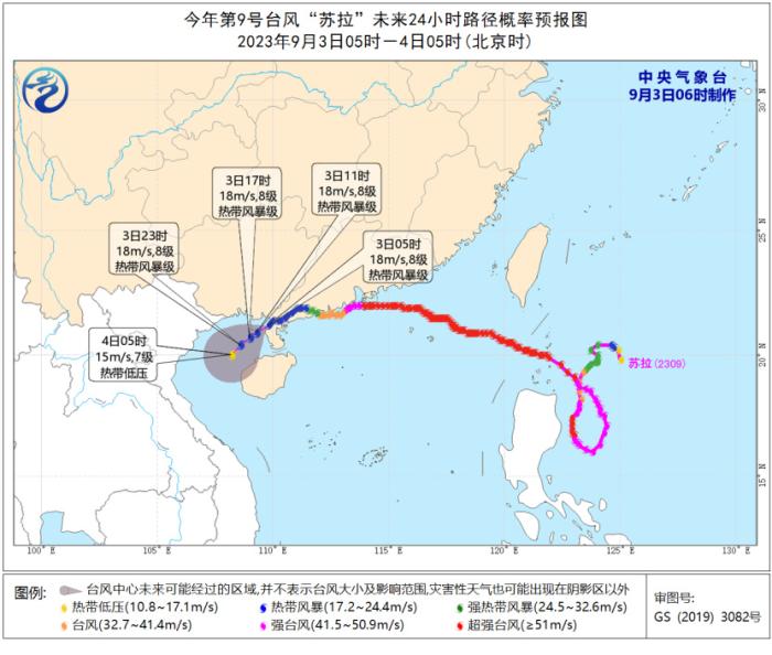 今年第9號(hào)臺(tái)風(fēng)“蘇拉”未來24小時(shí)路徑概率預(yù)報(bào)圖