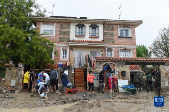 9月4日,居民在西班牙馬德里比利亞曼塔鎮(zhèn)清理淤泥。新華社發(fā)(古斯塔沃·巴連特?cái)z)