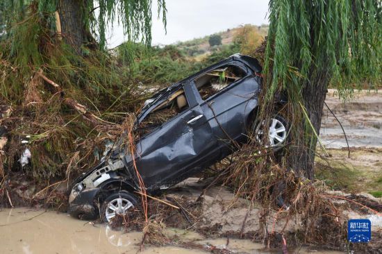 這是9月4日在西班牙馬德里比利亞曼塔鎮(zhèn)拍攝的被損毀的汽車。新華社發(fā)(古斯塔沃·巴連特?cái)z)