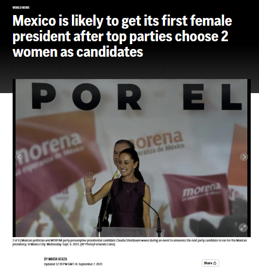 又一名女性候選人確定!墨西哥或?qū)⒂瓉硎孜慌偨y(tǒng)?
