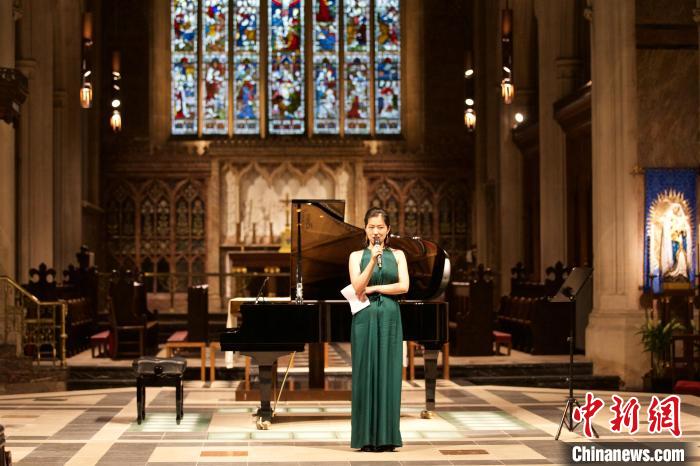 9月上旬,“東風”系列三音樂會在倫敦舉辦,來自不同國家和地區(qū)的9位杰出歌唱家分別用中文為100多位觀眾獻上了20首詩詞及民族民間藝術(shù)歌曲。圖為活動主辦者、旅英青年歌唱家錢亦萱主持音樂會。 Lexie Lin 攝
