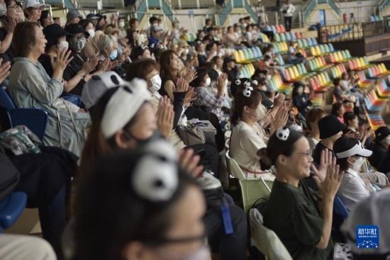 9月14日,觀眾在日本和歌山縣白浜冒險世界游樂園參加大熊貓“永明”31歲生日會。新華社發(fā)(中國駐大阪總領(lǐng)館供圖)