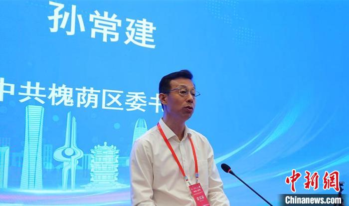 圖為槐蔭區(qū)委書記孫常建在開幕式濟(jì)南會(huì)場上發(fā)表致辭。濟(jì)南市槐蔭區(qū) 供圖