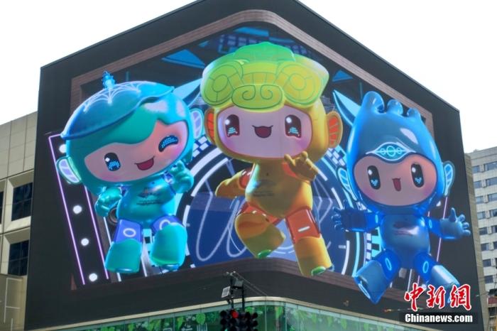 資料圖:4月1日,亞運(yùn)吉祥物裸眼3D宣傳片在杭州市西湖區(qū)文三數(shù)字生活街區(qū)開播。中新社記者 錢晨菲 攝