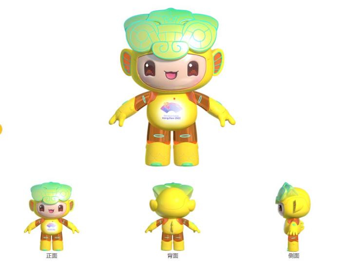 “琮琮”的設(shè)計(jì)靈感源自良渚玉琮,代表世界遺產(chǎn)良渚古城遺址。它全身以源自大地、象征豐收的黃色為主色調(diào),頭部裝飾的紋樣取自良渚文化的標(biāo)志性符號“神人獸面紋”,意寓“不畏艱險(xiǎn)、超越自我”。“琮琮”堅(jiān)強(qiáng)剛毅、敦厚善良、體魄強(qiáng)健、熱情奔放,擅長力量型與傳統(tǒng)項(xiàng)目,如武術(shù)、舉重等。
