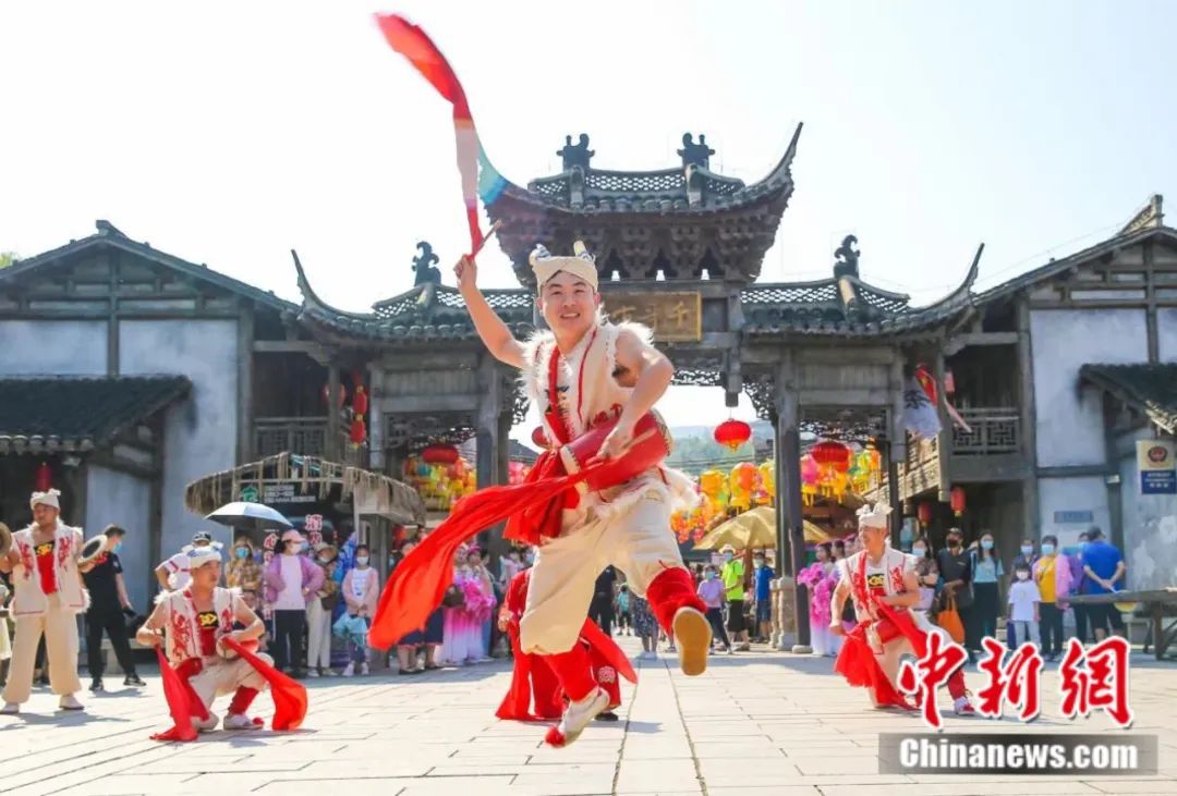 千華古村內的“歡慶腰鼓”表演。鐘學滿 攝