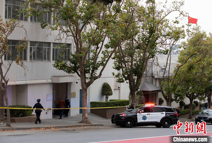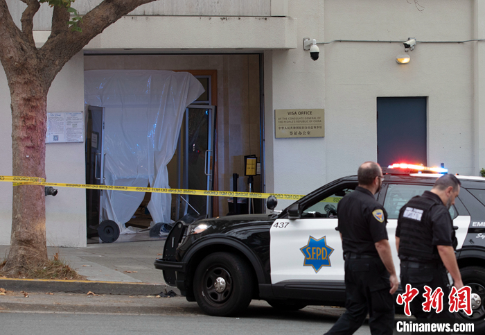 當(dāng)?shù)貢r(shí)間10月9日,美國舊金山警方在中國駐舊金山總領(lǐng)館附近對總領(lǐng)館館舍遭沖闖襲擊事件展開調(diào)查。中國駐舊金山總領(lǐng)館發(fā)言人表示,9日下午,有不明身份人員駕車暴力沖撞闖入中國駐舊金山總領(lǐng)館證件大廳,對工作人員及現(xiàn)場民眾生命安全構(gòu)成嚴(yán)重威脅,對總領(lǐng)館設(shè)施與財(cái)產(chǎn)造成嚴(yán)重破壞,性質(zhì)極其惡劣。 中新社記者 劉關(guān)關(guān) 攝