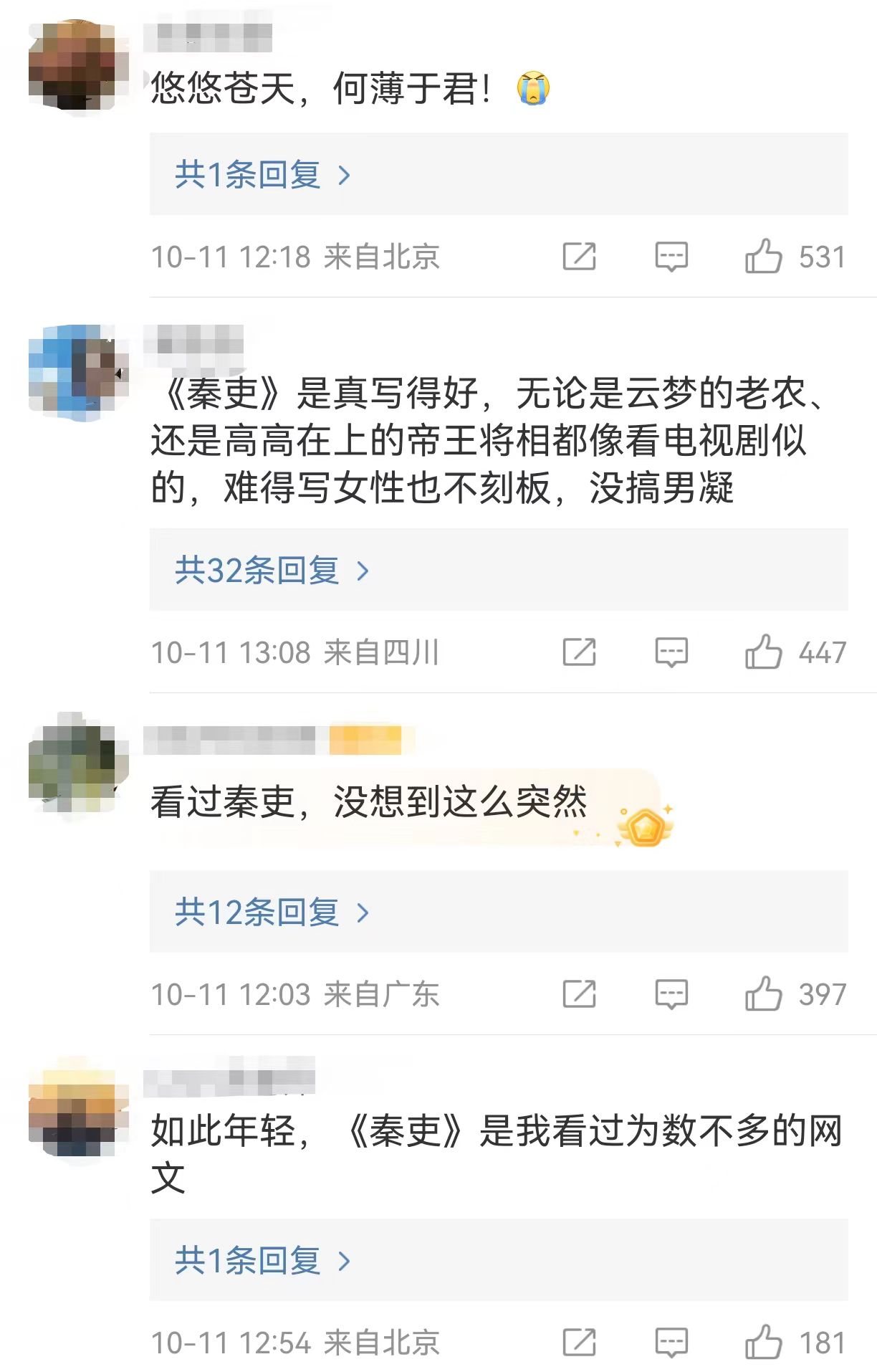 閱文集團(tuán)發(fā)布的訃告里寫道:“七月新番一生赤誠,專注。他有志于循中國歷史脈絡(luò),由遠(yuǎn)及近,針對各個歷史時期完成相應(yīng)的故事創(chuàng)作。為此,他嚴(yán)謹(jǐn)推敲,細(xì)致考據(jù),從極少作家涉足的春秋戰(zhàn)國題材起筆,扎實(shí)書寫秦、漢故事。他所塑造的黑夫、任弘、第五倫等角色,燦爛鮮活,引讀者共鳴、共情,如今中斷于三國篇,我們深感悲痛、遺憾?!?/p>