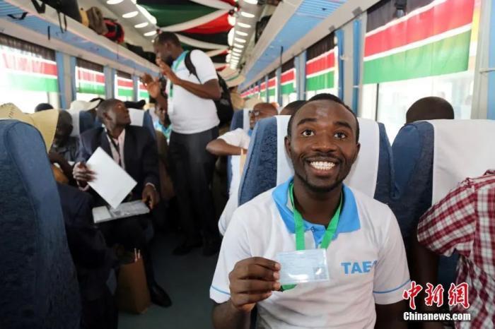 資料圖:當(dāng)?shù)貢r(shí)間2017年5月31日,蒙巴薩至內(nèi)羅畢標(biāo)準(zhǔn)軌鐵路通車(chē)儀式在肯尼亞蒙巴薩舉行,期間一名旅客展示自己的車(chē)票。中新社記者 宋方燦 攝