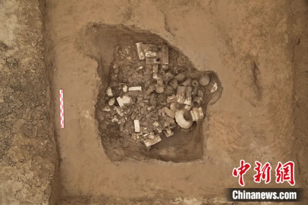 鄴城遺址東郭區(qū)佛教造像埋藏坑遺跡發(fā)掘現(xiàn)場。鄴城考古隊供圖