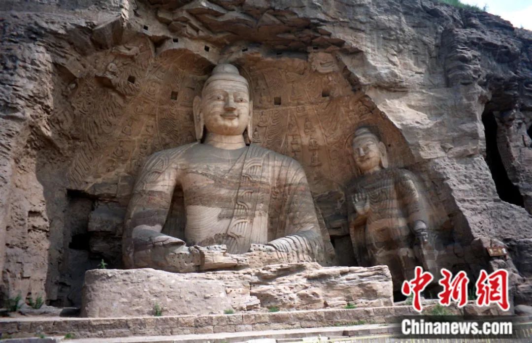 云岡第20窟主尊與左壁立佛。杜飛豹 攝