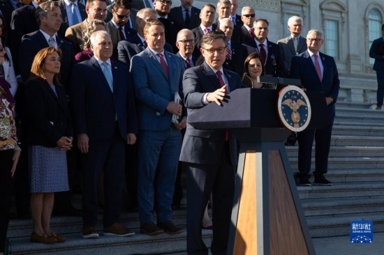 10月25日,在美國華盛頓國會(huì),新當(dāng)選的眾議院議長(zhǎng)邁克·約翰遜發(fā)表講話。新華社發(fā)(亞倫攝)