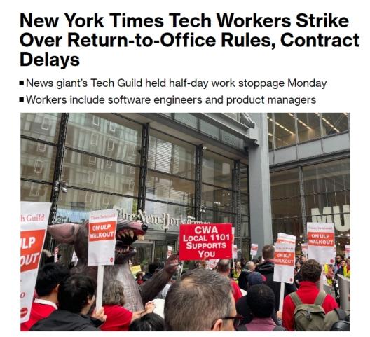 《紐約時報》技術(shù)人員罷工 反對強制回公司辦公