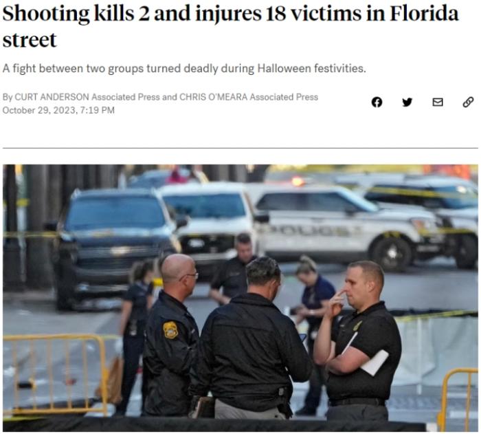 中新網(wǎng)10月30日電 據(jù)美國廣播公司(ABC)報道,當(dāng)?shù)貢r間29日,美國佛羅里達州坦帕市萬圣節(jié)慶?;顒悠陂g發(fā)生大規(guī)模槍擊,造成2人死亡,18人受傷。