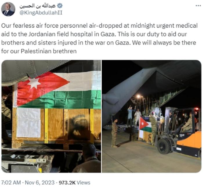 阿卜杜拉二世表示,“幫助在加沙戰(zhàn)火中受傷的兄弟姐妹,是我們的責(zé)任,我們將永遠(yuǎn)支持我們的巴勒斯坦兄弟。”