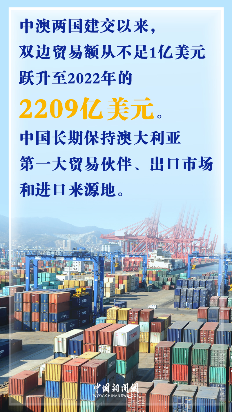 據(jù)中國駐澳大利亞大使館網(wǎng)站數(shù)據(jù),中澳兩國建交50年來,雙邊貿(mào)易額從當(dāng)時不足1億美元,躍升至2022年的2209億美元。中國長期保持澳大利亞第一大貿(mào)易伙伴、出口市場和進(jìn)口來源地的地位。與此同時,越來越多的澳大利亞優(yōu)質(zhì)農(nóng)產(chǎn)品走進(jìn)中國家庭,豐富了中國消費者的選擇。