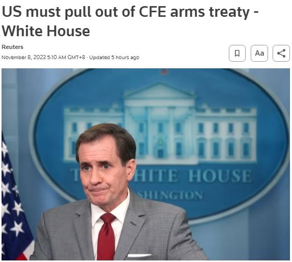 同日,美國白宮網(wǎng)站上發(fā)布聲明稱,鑒于形勢變化,美國將從12月7日起暫停履行《歐洲常規(guī)武裝力量條約》義務(wù),并表示這一決定是在與北約盟國密切協(xié)商和協(xié)調(diào)下做出的。