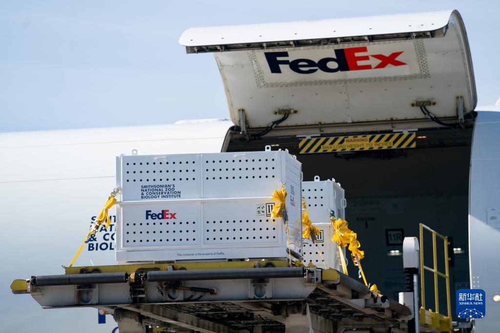 當(dāng)天上午,華盛頓史密森學(xué)會(huì)國(guó)家動(dòng)物園工作人員將三只裝有大熊貓的特制“旅行包廂”、220磅(約合100公斤)竹子、飲用水及相關(guān)物資運(yùn)上卡車。隨后,載有“美香”“添添”和“小奇跡”的車隊(duì)駛離動(dòng)物園,前往華盛頓杜勒斯國(guó)際機(jī)場(chǎng)。