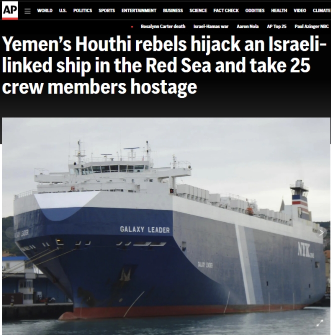 對(duì)此,以色列軍方表示,胡塞武裝扣押的并不是以色列船只,船上也沒有以色列人,而是一艘由英國所有、日本經(jīng)營的貨船,并譴責(zé)此事為“恐怖主義行為”。