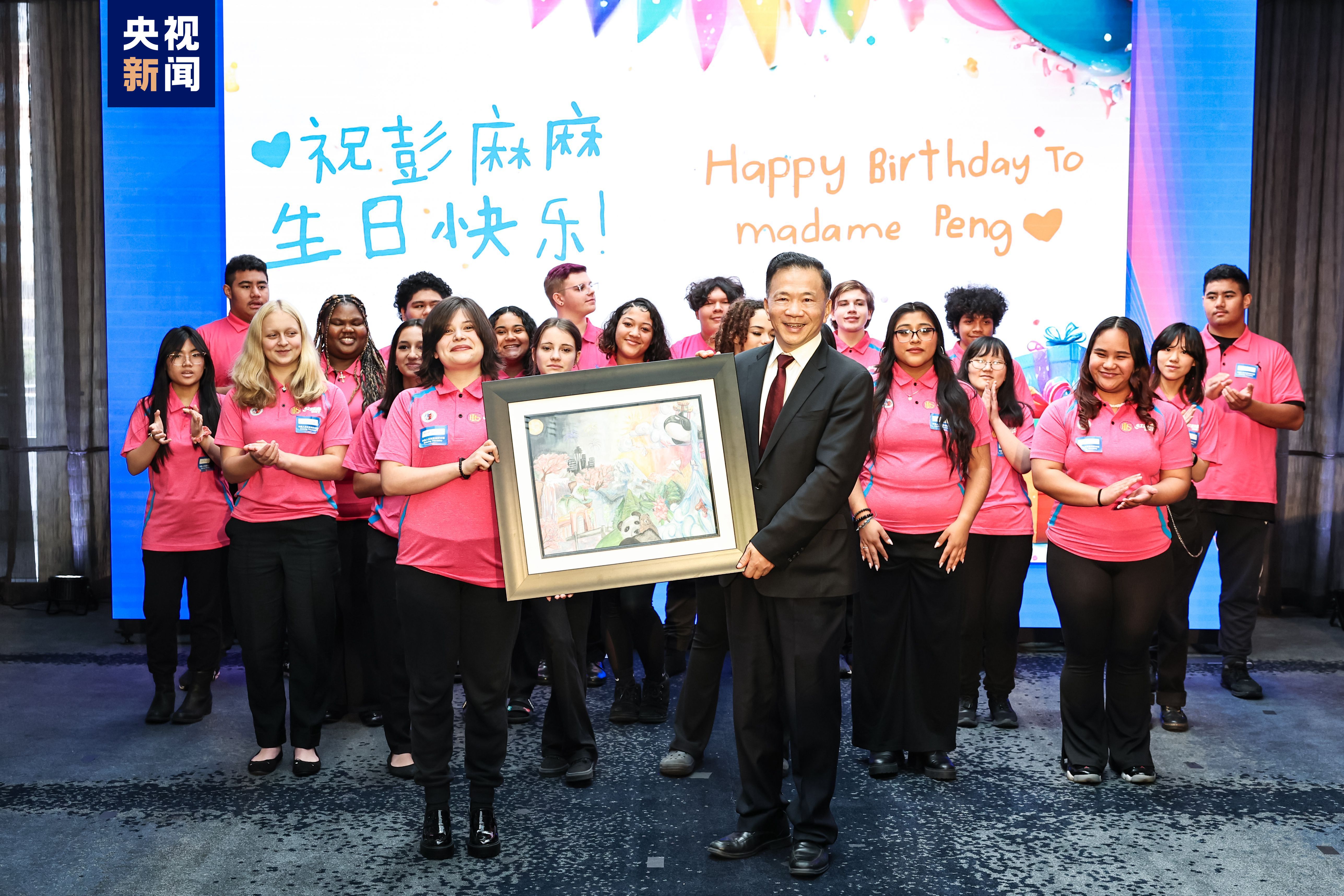 活動現場,來自華盛頓州林肯中學的合唱團演唱了中文歌曲《在希望的田野上》和英文歌曲《伴我同行》,祝愿中美友誼的紐帶更加牢固,煥發(fā)新的活力。同學們還為習近平主席和夫人彭麗媛精心準備了手繪畫作《一起向未來》,并用精美的生日賀卡和《生日快樂》歌親切地為“彭麻麻”送上了生日祝福。總臺臺長代為接收。