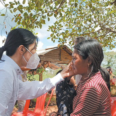 2022年3月,由中國中醫(yī)科學(xué)院西苑醫(yī)院醫(yī)生為主體的中國援柬中醫(yī)醫(yī)療隊抵達柬首都金邊,開始為期1年的醫(yī)療服務(wù)工作。今年1月,醫(yī)療隊來到桔井省,為當?shù)孛癖娺M行義診,許多人慕名前來檢查身體?!奥牬謇锶苏f,中國醫(yī)療隊的口碑非常好,治好了很多患者,我就想帶女兒去試試?!蓖⒍U達的母親孔吉棉告訴記者。
