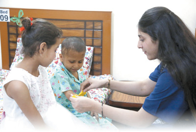 考慮到兒童病患的特殊性,“小家”一直將孩子們的心理疏導(dǎo)作為志愿工作的重點?!昂⒆觽兊男睦頎顟B(tài)很重要?!薄靶〖摇卑头截撠熑颂K比婭·阿德南說。阿德南有30多年的兒童公益服務(wù)經(jīng)歷,在她和巴中兩國同事的引導(dǎo)下,孩子們相互鼓勵支持,在閑暇時制作各種手工藝品布置“小家”。