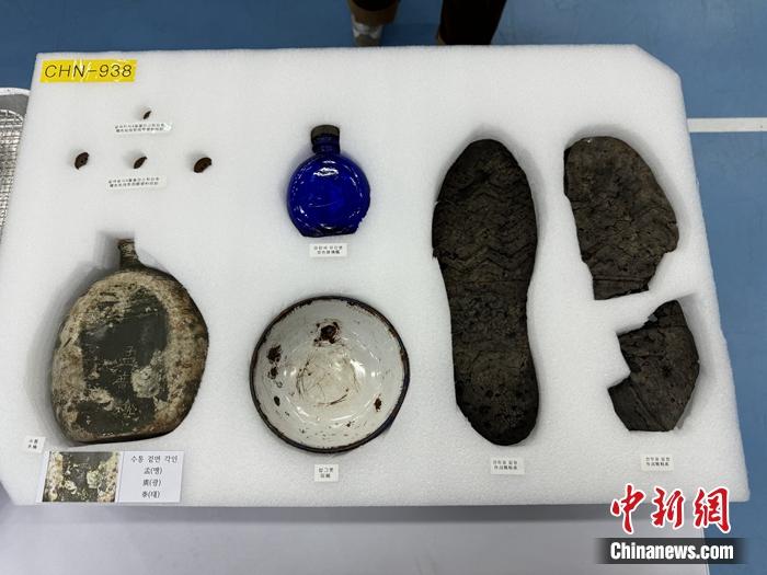 第十批在韓中國人民志愿軍烈士遺骸裝殮儀式在韓國仁川舉行。圖為部分遺物。中新網記者 劉旭 攝