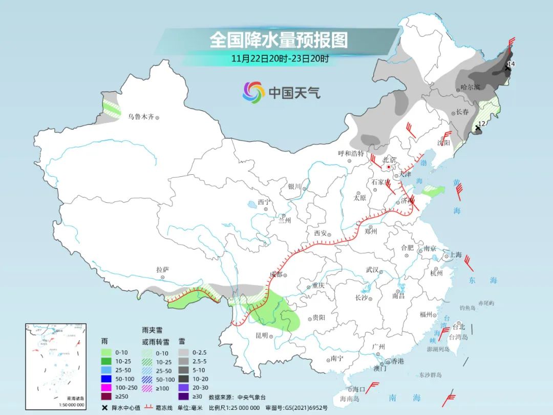 需要提醒的是,今天夜間至明天早晨,隨著氣溫下降,遼寧和吉林部分地區(qū)可能由雨轉(zhuǎn)雪,很容易導(dǎo)致路面濕滑、結(jié)冰,上述地區(qū)小伙伴外出時(shí)要格外注意交通安全。