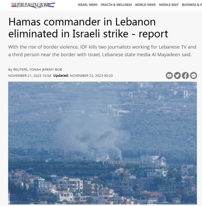中新網(wǎng)11月23日電 據(jù)以色列《耶路撒冷郵報》報道,當(dāng)?shù)貢r間21日,在以色列對黎巴嫩進行的空襲中,哈馬斯“卡桑旅”黎巴嫩分支副指揮官卡拉茲被炸身亡。