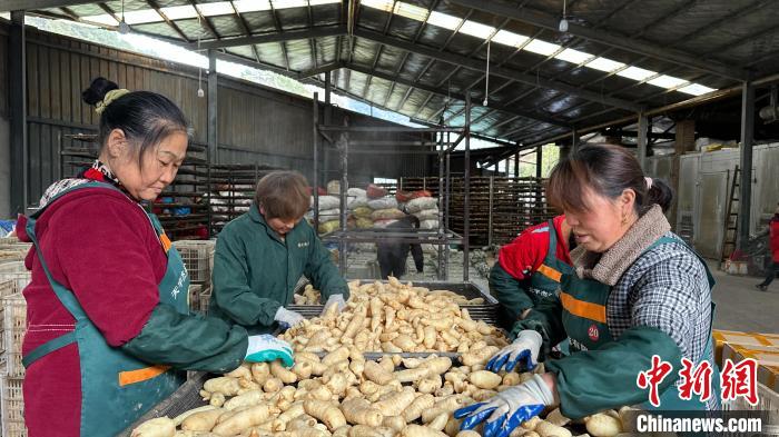 下堡坪鄉(xiāng)一家天麻加工廠的工人們在處理天麻?!≈x陽 攝