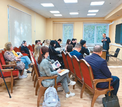中國(guó)學(xué)者在俄羅斯中國(guó)國(guó)際學(xué)校給學(xué)生們做講座。
