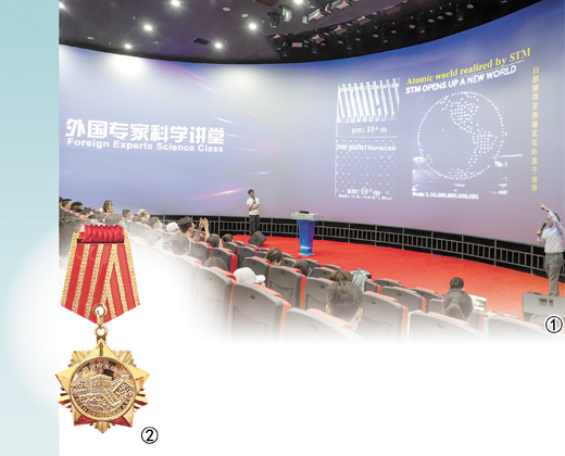 圖①:中國科技部國外人才研究中心主辦的2023年外國專家科學講堂系列活動,邀請各領(lǐng)域外國專家為中國學生及家長普及科學知識。圖為一位外國專家(右)在北京天文館做物理講座。