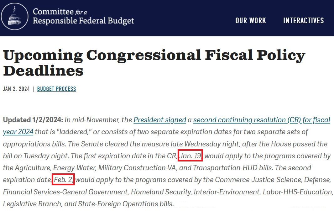 據(jù)悉,國會議員們將在下周結(jié)束新年假期返回華盛頓,繼續(xù)解決從去年9月上一財年結(jié)束時延宕至今的政府支出問題,特別是及時處理上述兩個涉及“最后期限”的難題。