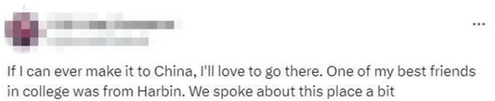 有網(wǎng)友表示,“如果我能去中國(guó),我很想去那里。我大學(xué)時(shí)最好的一個(gè)朋友就是來(lái)自哈爾濱。我們聊過(guò)這個(gè)地方?!?/p>