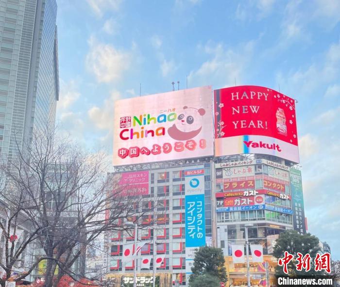 “你好!中國”國家旅游形象推廣和吉祥龍拜年視頻亮相日本東京澀谷。中國駐東京旅游辦事處供圖