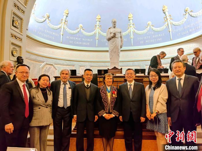 1月9日,中國駐法國大使盧沙野出席法國國家醫(yī)學(xué)科學(xué)院新年“開幕儀典”,與黃曉軍教授及法國國家醫(yī)學(xué)科學(xué)院新主席等合影。中國駐法國使館供圖