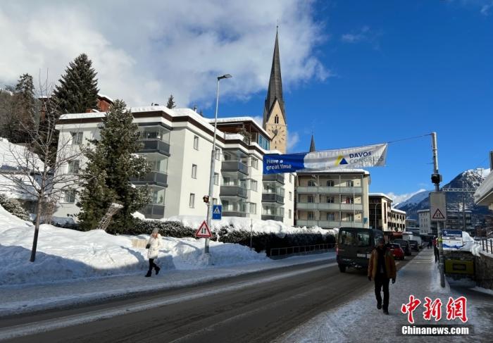 資料圖:當(dāng)?shù)貢r間1月15日,達沃斯街道上掛起會議相關(guān)景觀裝飾。