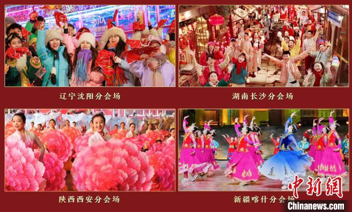 在中國工業(yè)博物館的沈陽分會場,東北曲藝與當代風尚的創(chuàng)意碰撞,讓受眾在冰天雪地感受火一般的熱情;長沙分會場選址于湘江與瀏陽河交匯處的“三館一廳”,用青春之歌呈現(xiàn)“不夜星城”朝氣蓬勃的風貌;西安分會場的國潮表演將陜派說唱、創(chuàng)意水袖、鼓樂交響等多種藝術形式相融合,大唐不夜城再現(xiàn)詩意滿長安的恢弘景象;位于喀什古城內的喀什分會場,各族群眾歡歌笑語,帶來器樂展示、情景演繹等表演。