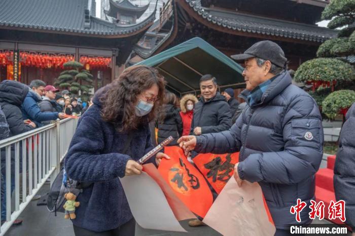 新春送福活動(dòng)現(xiàn)場?!∩虾S穹鸲U寺供圖