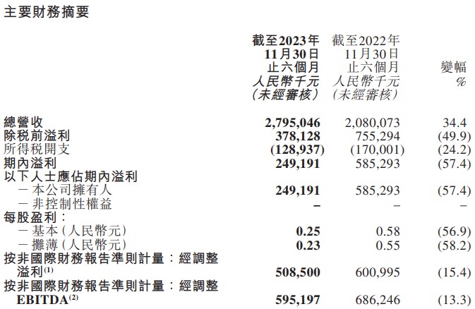 1月24日晚間,東方甄選公布的財(cái)報(bào)數(shù)據(jù)顯示,在截至2023年11月30日的六個(gè)月內(nèi),東方甄選總營收27.95億元,同比增長34.4%;凈利潤2.49億元,同比下滑57.4%;經(jīng)調(diào)整凈利潤為5.95億元,同比下滑13.3%。