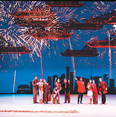 舞臺上,紅彤彤的燈籠、喜慶的春聯(lián)、熱鬧的廟會奏響了中國農(nóng)歷新年的序曲;“團(tuán)團(tuán)”和“圓圓”家的年夜飯彰顯了中國禮儀之邦的待客之道、尊老愛幼的傳統(tǒng)美德,一張全家福更傳達(dá)了中國人對親情的重視和對團(tuán)圓的向往;“胡桃夾子”大戰(zhàn)“年”獸,則充滿童趣地演繹了“過年”的傳說;而當(dāng)寓意吉祥的仙鶴在蒼勁的松樹下迎著朝陽翩翩起舞,西方芭蕾藝術(shù)在中國文化意象中煥發(fā)出了美妙的東方神韻;扇子舞、絲綢舞、風(fēng)箏舞、陀螺舞……一個個頗具中國元素的慶典場面讓阿聯(lián)酋觀眾游歷在瑰麗多姿的中國傳統(tǒng)文化中。