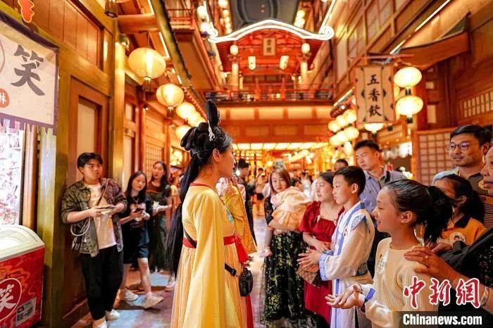 圖為游客在“長安十二時辰”沉浸式唐風市井生活街區(qū)體驗、游覽。 滕瀚 攝