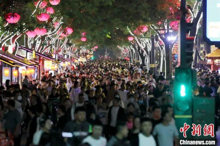 圖為西安大唐不夜城游人如織。 張遠 攝