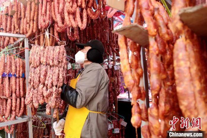 圖為西安冬日街頭臘腸飄香。 張遠 攝