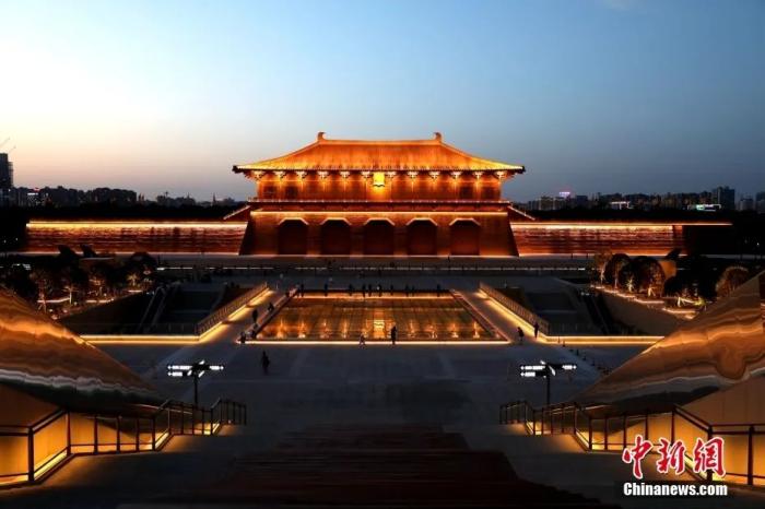 圖為西安大明宮國家遺址公園夜景。 張遠 攝