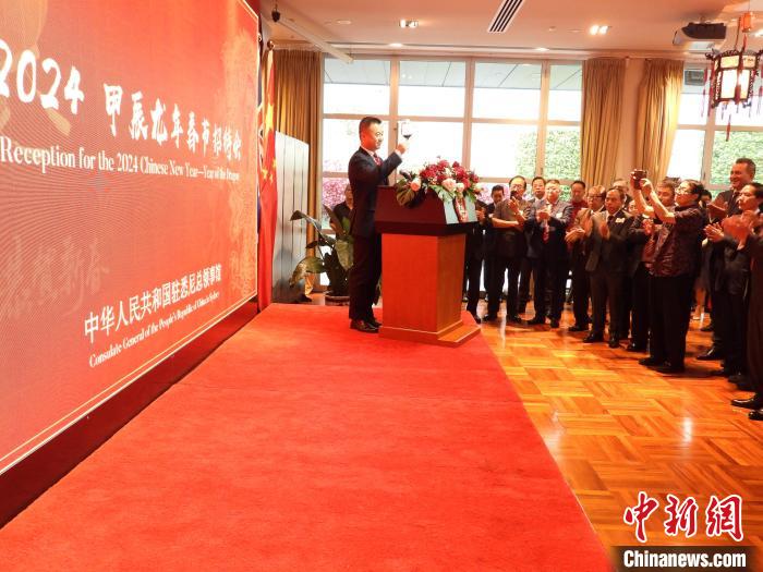 當(dāng)?shù)貢r(shí)間2月2日晚,中國駐悉尼總領(lǐng)事館在領(lǐng)館舉辦2024年春節(jié)招待會。記者 顧時(shí)宏 攝