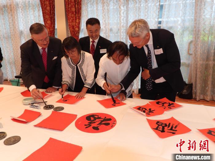 當(dāng)?shù)貢r(shí)間2月2日晚,中國駐悉尼總領(lǐng)事館在領(lǐng)館舉辦2024年春節(jié)招待會。當(dāng)晚的招待會現(xiàn)場上,來賓們互致新春祝福,并興致勃勃地體驗(yàn)中國書法。記者 顧時(shí)宏 攝
